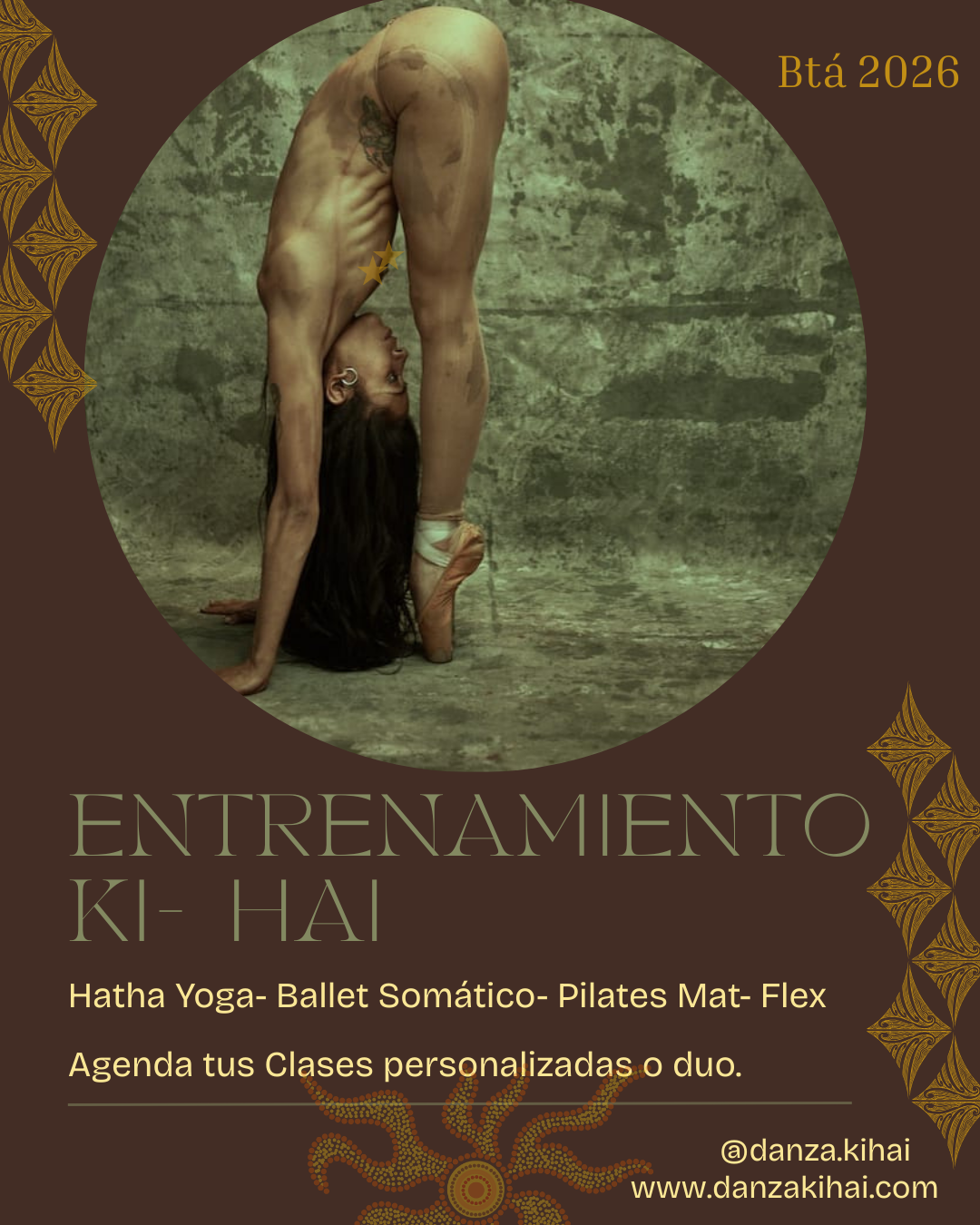 Soy creadora de Danza Ki Hai, educacion corporal conciente que nace en 2017 y contininua hasta la fecha. Esta metodología forma parte de mi investigación artística y pedagógica, y se desarrolla en clases, talleres, laboratorios, acompañamientos y procesos de creación escénica.
